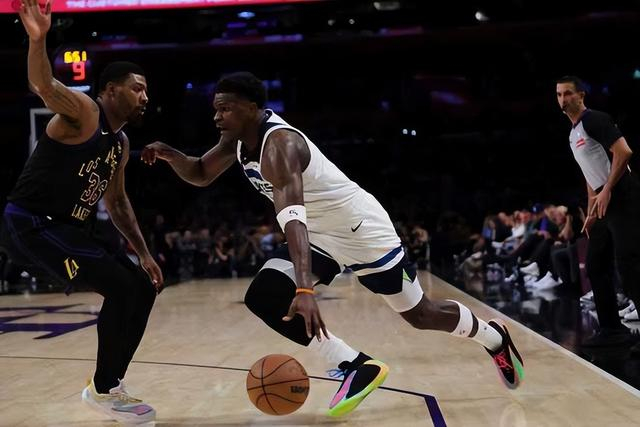 易边再战,湖人在一点点寻找得分机会,东契奇和里夫斯各自上篮得手,随后东契奇助攻八村垒扣篮得分,湖人用一波6-1的攻势建立了领先优势。东契奇在三分线外晃开防守,虽然被兰德尔顶开了重心,但是仍然命中一记打板投篮的三分球。爱德华兹三分不中,东契奇抢到篮板球后快速长传至前场,拉拉维亚虽然未能将球打进,但是造成爱德华兹防守犯规两罚一中,湖人的领先优势已经达到12分。爱德华兹在外线找到机会,命中本场比赛个人的第一记三分球。爱德华兹本场比赛低迷的手感,也是森林狼在进攻端始终打不开局面的原因。里夫斯反击中打进一球,湖人将分差拉大至19分。